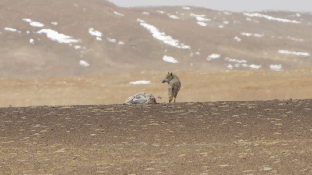 羌塘國家級自然保護區核心區中的野狼和已經死去的母羊。