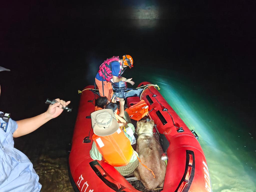 圖為8月3日消防隊員對江門古兜山野游探險受困人員開展營救。(江門市應急管理局供圖)