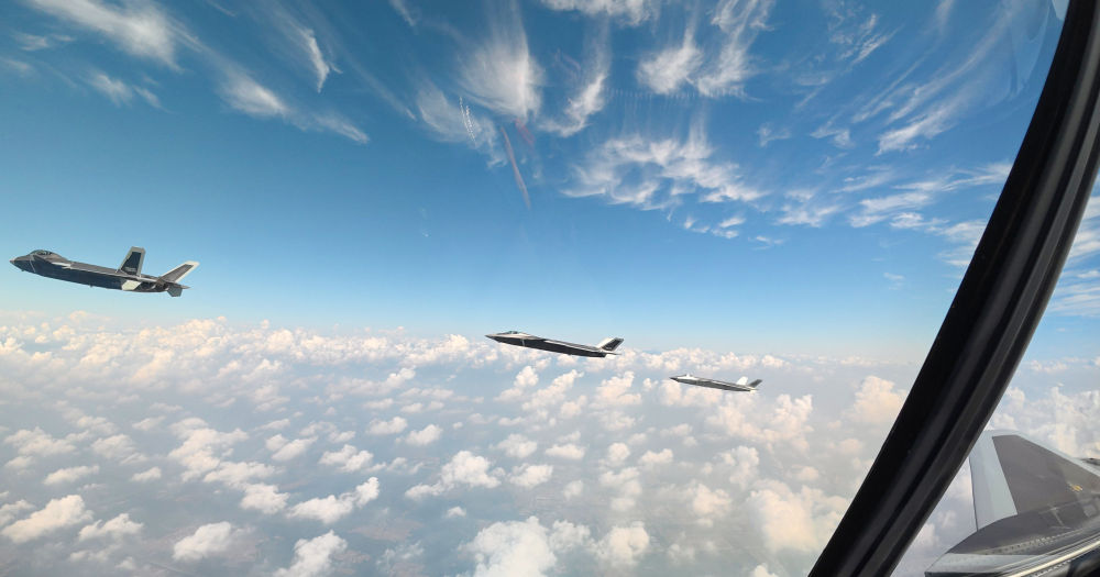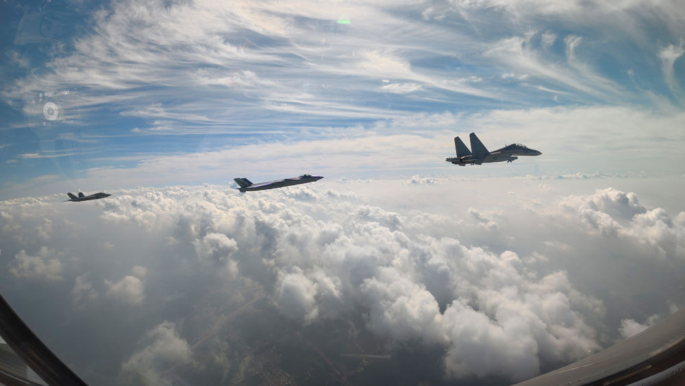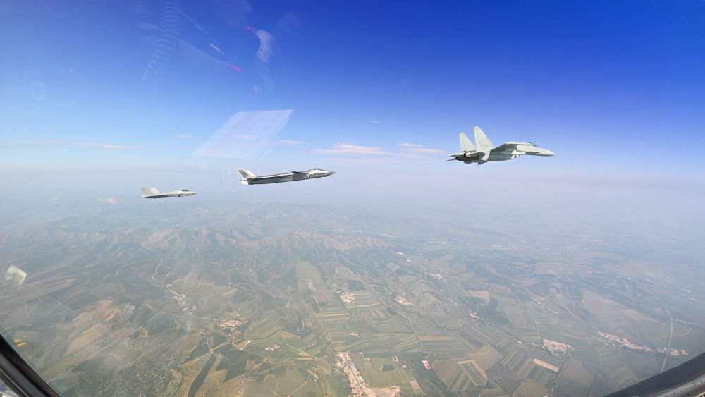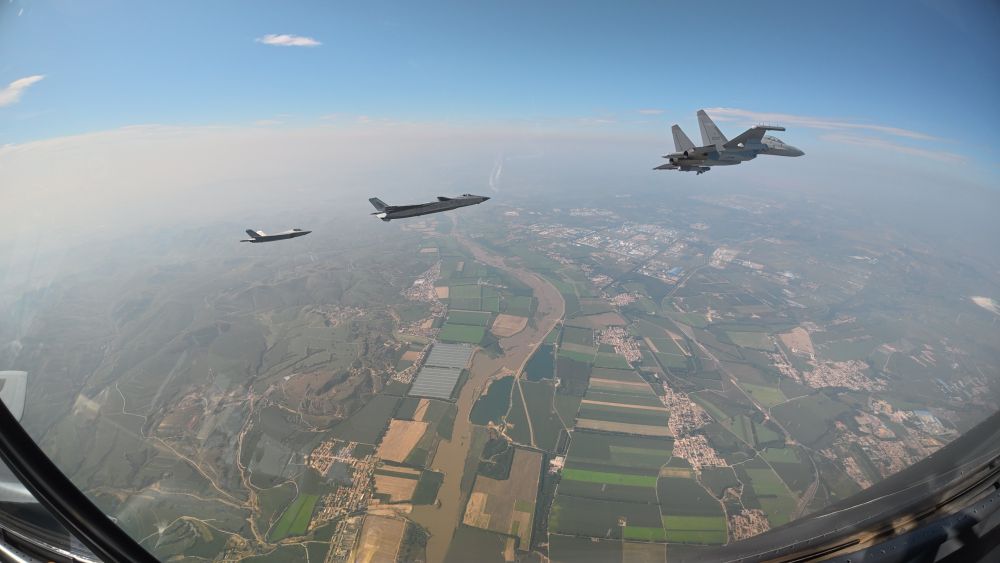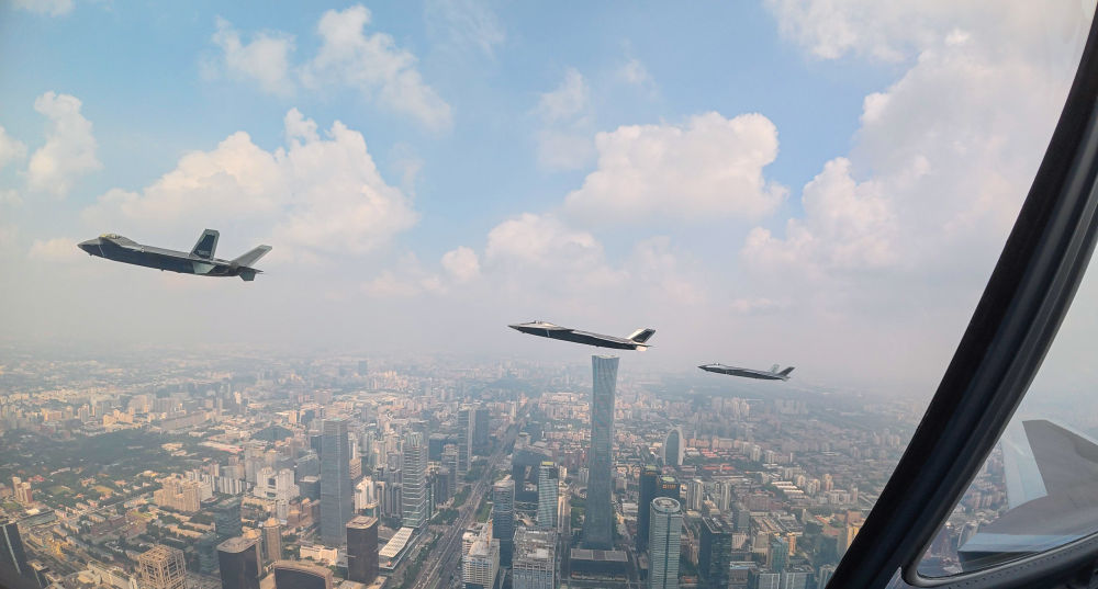 ↑這是殲擊機梯隊從北京城區上空飛過。