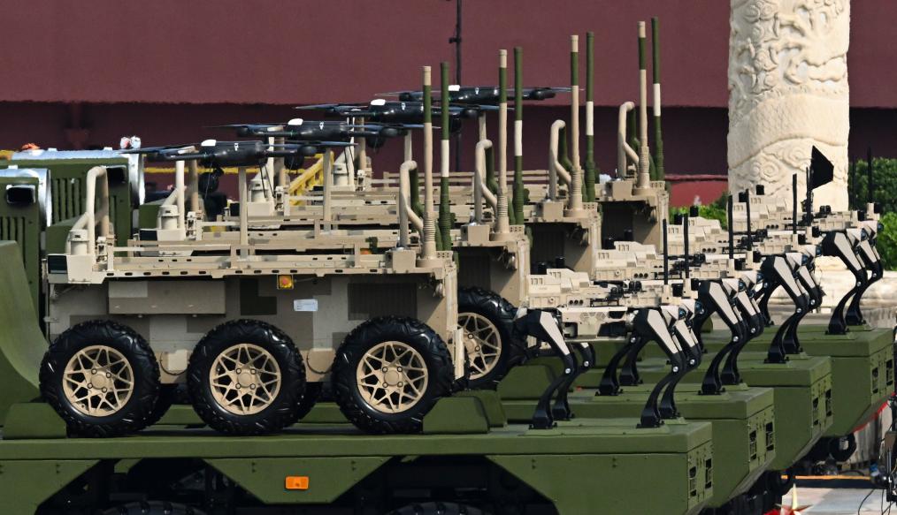 方隊受閱的偵打突擊、掃雷排爆、班組支援等無人戰車,能遠程操控、自主跟隨、智能決策,均為我國自主研發,可以根據任務需要,靈活進行有人無人混合編組,實現陸上有人無人協同作戰新突破。