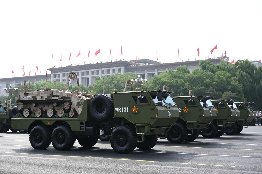 9月3日,紀念中國人民抗日戰爭暨世界反法西斯戰爭勝利80周年大會在北京隆重舉行。這是陸上無人作戰方隊接受檢閱。新華社記者 楊冠宇 攝