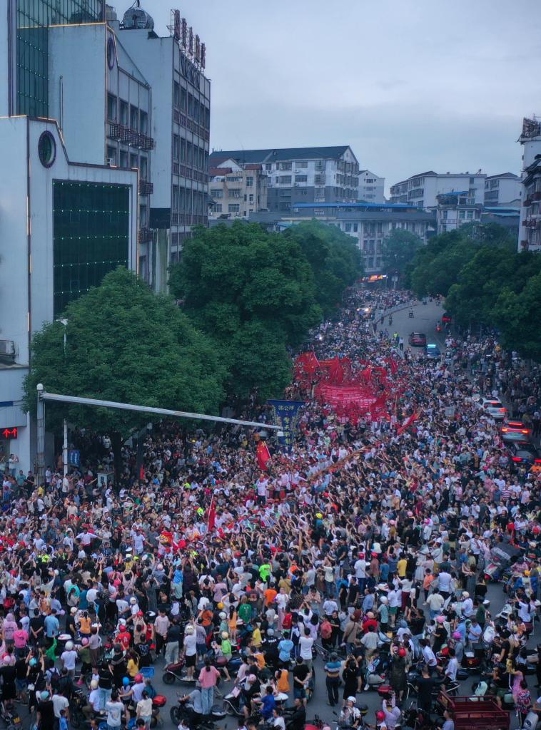 郭公坪鎮擎天戰龍隊抵達縣城時受到熱烈歡迎。麻陽縣委宣傳部供圖