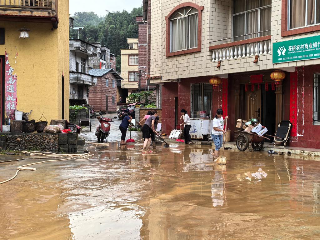 8月3日上午,梧州市蒼梧縣大部分地區出現了暴雨。強降雨導致部分村莊道路、農作物被淹。蒼梧縣內大小河流近百條,其中六堡河流經的不倚村暴發山洪,道路塌方,受災嚴重。