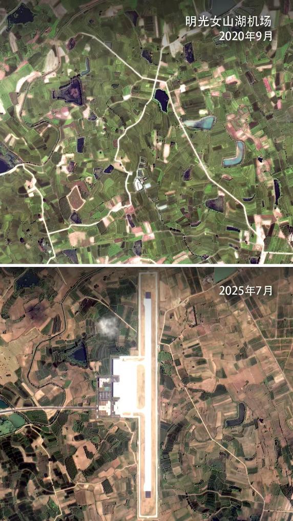 遙感衛星拍攝下明光女山湖機場從無到有的建設過程。新華社發
