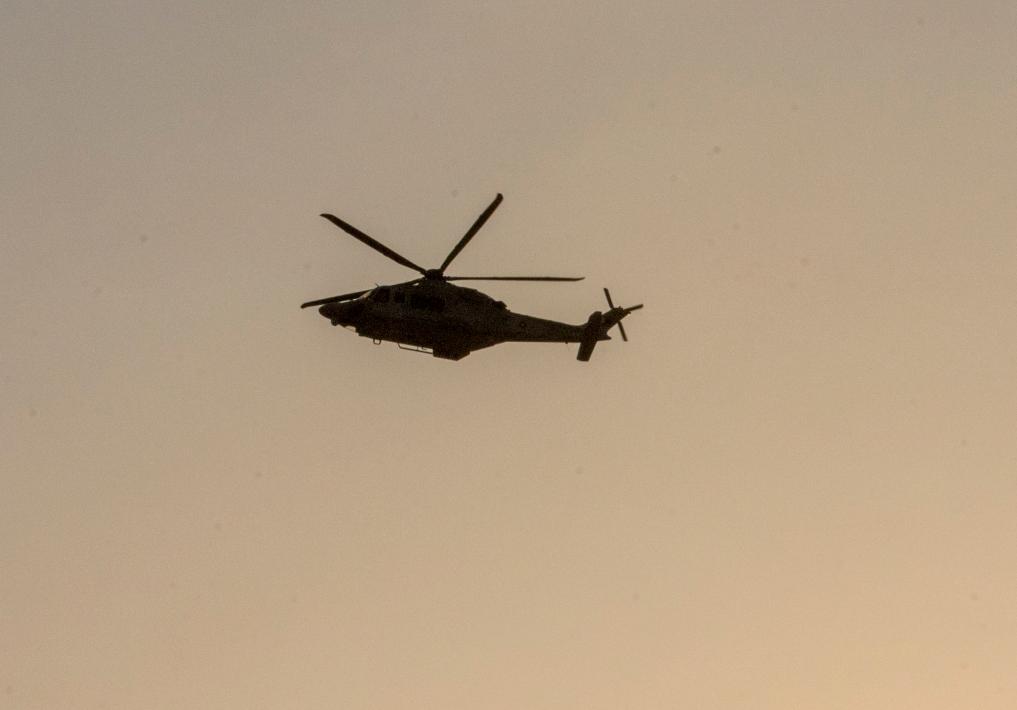 9月9日,在卡塔爾首都多哈,一架直升機在遭以色列襲擊的現場上空盤旋。新華社發(尼庫攝)