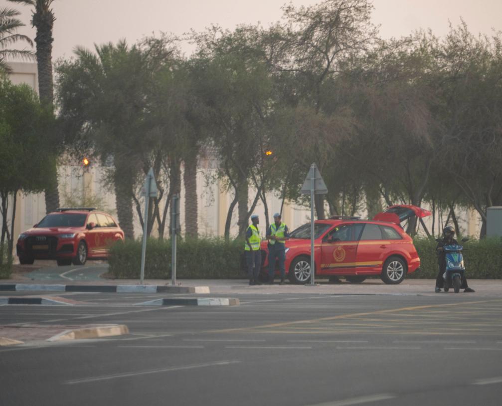 9月9日,在卡塔爾首都多哈,安全人員在遭以色列襲擊的現場附近執勤。新華社發(尼庫攝)
