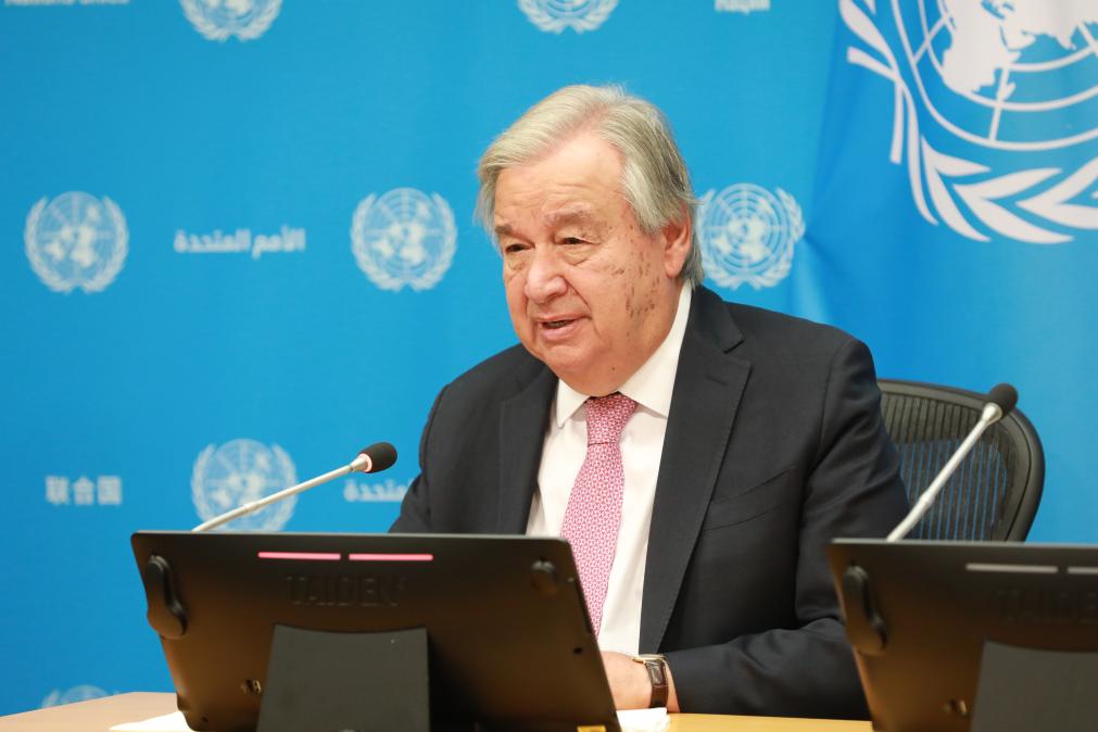 9月9日,聯合國秘書長古特雷斯在美國紐約聯合國總部的記者招待會上譴責以色列襲擊卡塔爾。新華社記者謝鍔攝
