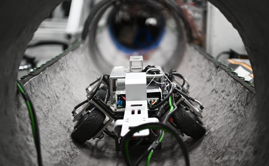 6月25日在廣東省深圳市的廣東省具身智能機器人創新中心拍攝的管道檢測機器人。新華社記者 鄧華 攝