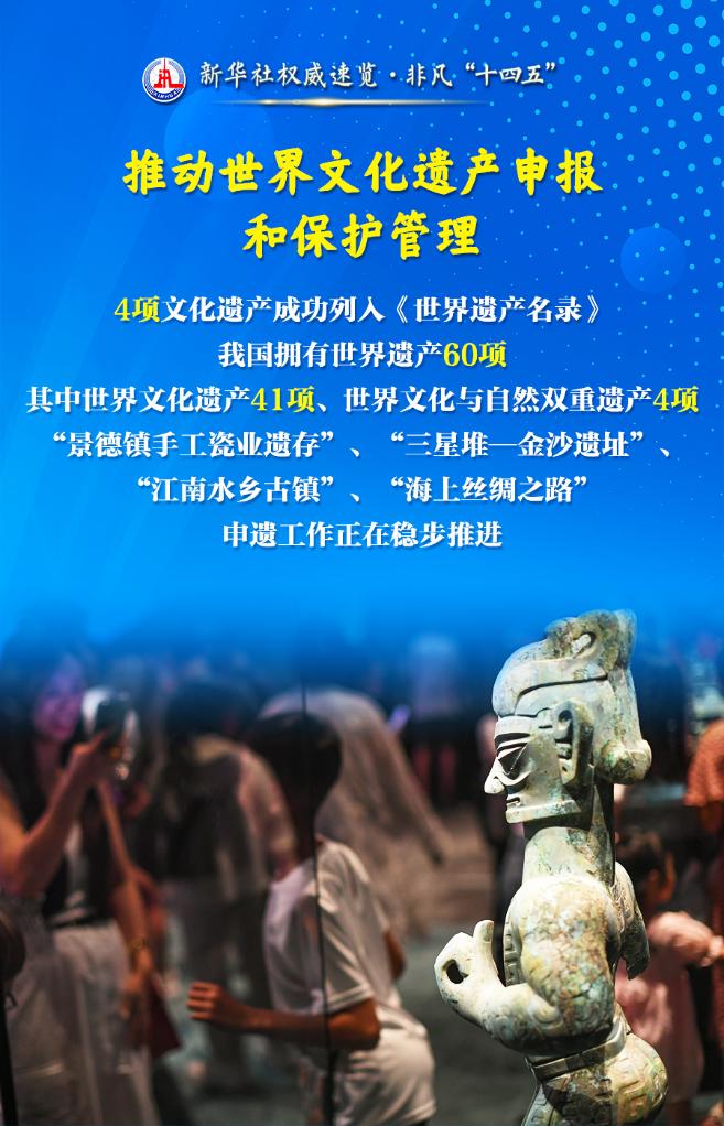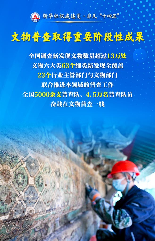 新發現文物數量超過13萬處、全國備案博物館數量達到7046家、中國世界遺產總數達到60項……國新辦10日舉行“高質量完成‘十四五’規劃”新聞發布會,國家文物局介紹文物事業高質量發展有關情況,并就群眾關心的文物保護、博物館熱等問題做了詳細解答。跟隨這組海報,一起了解。