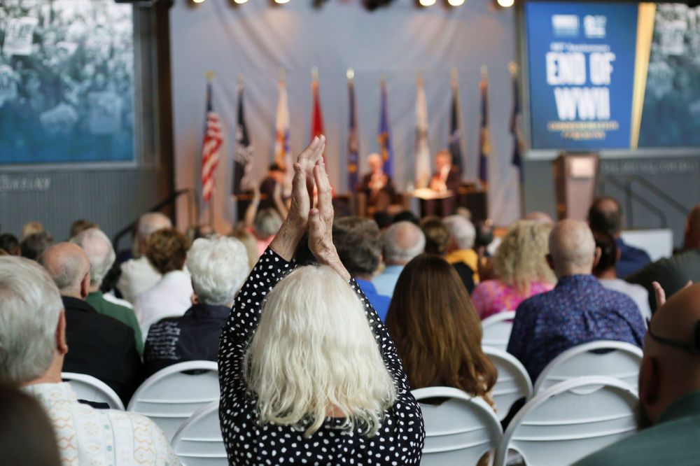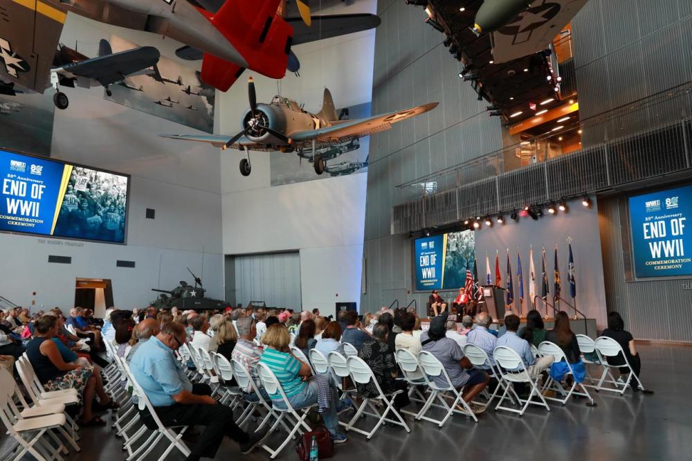 8月14日,在美國路易斯安那州新奧爾良市國家二戰博物館舉行的二戰結束80周年紀念儀式現場。魏蘭攝