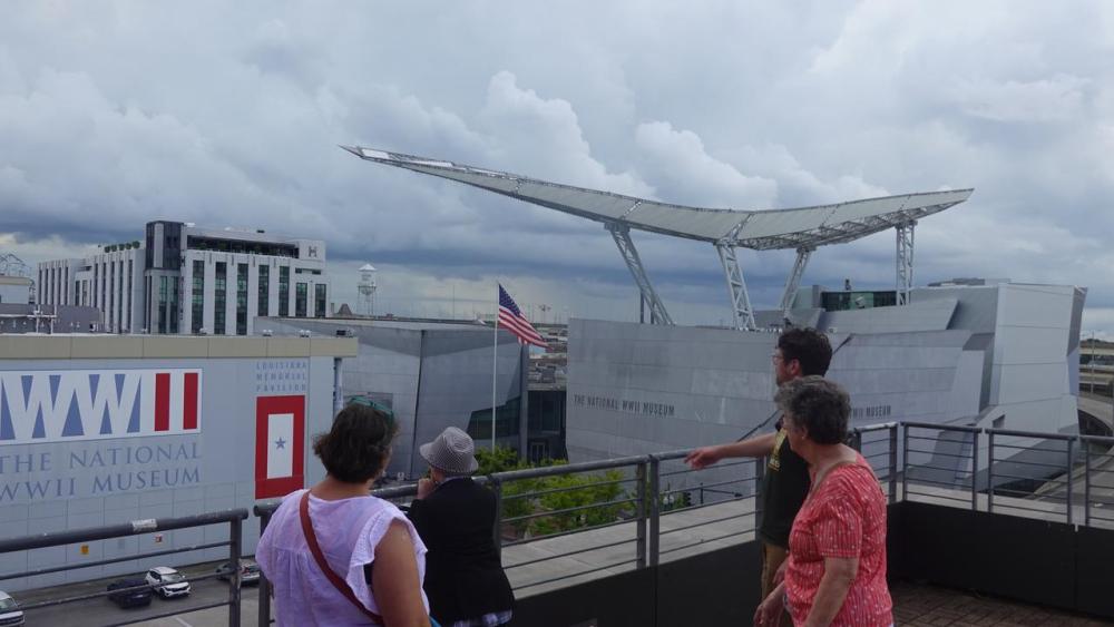 8月11日,游客遠眺位于美國路易斯安那州新奧爾良市中心的美國國家二戰博物館。徐劍梅攝