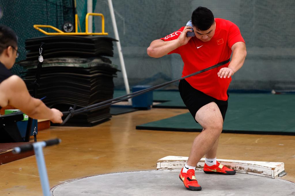 8月29日,中國男子鉛球選手邢家梁在北京備戰東京世錦賽。新華社記者 王麗莉 攝