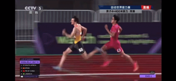 400米接力項目部分隊員在賽前訓練中相互加油↓