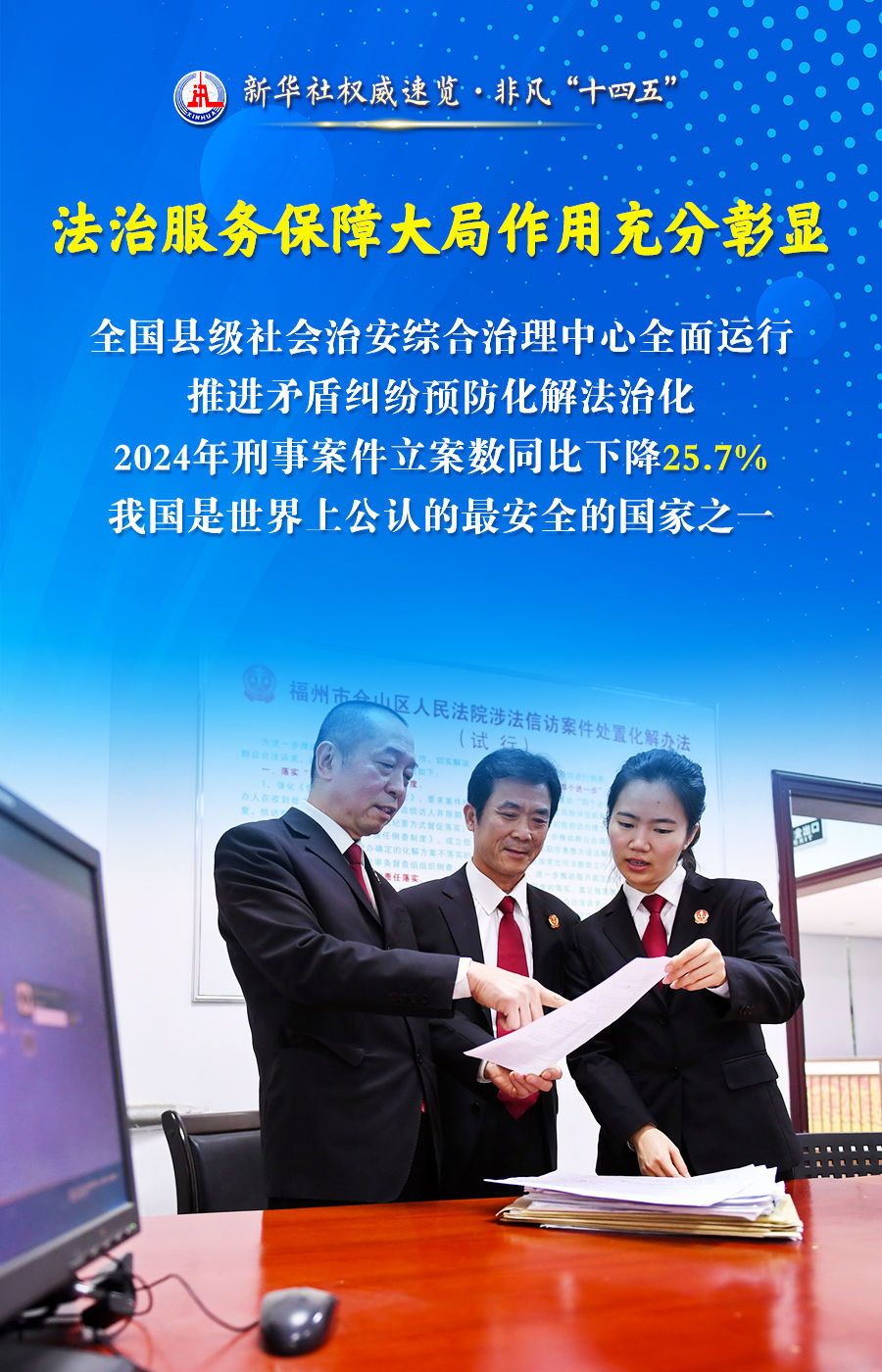 法治是中國式現代化的重要保障。在12日舉行的“高質量完成‘十四五’規劃”發布會上,中央政法委秘書長訚柏說,“十四五”期間,法治中國建設取得突破性進展、歷史性成就,為書寫經濟快速發展和社會長期穩定“兩大奇跡”新篇章提供了有力保障,具體體現在五個方面。讓我們跟隨海報,共同了解。