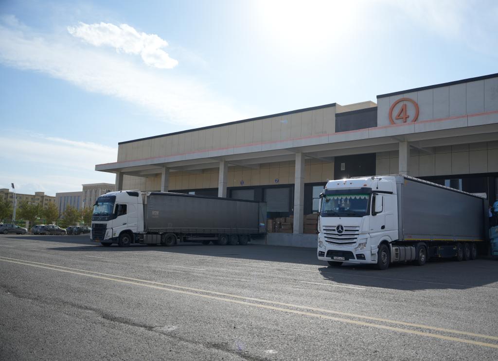 9月11日,在新疆阿拉山口跨境電商產業園,兩輛來自哈薩克斯坦的貨車在等待裝貨。新華社記者 張浩波 攝