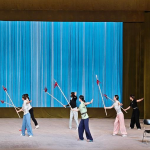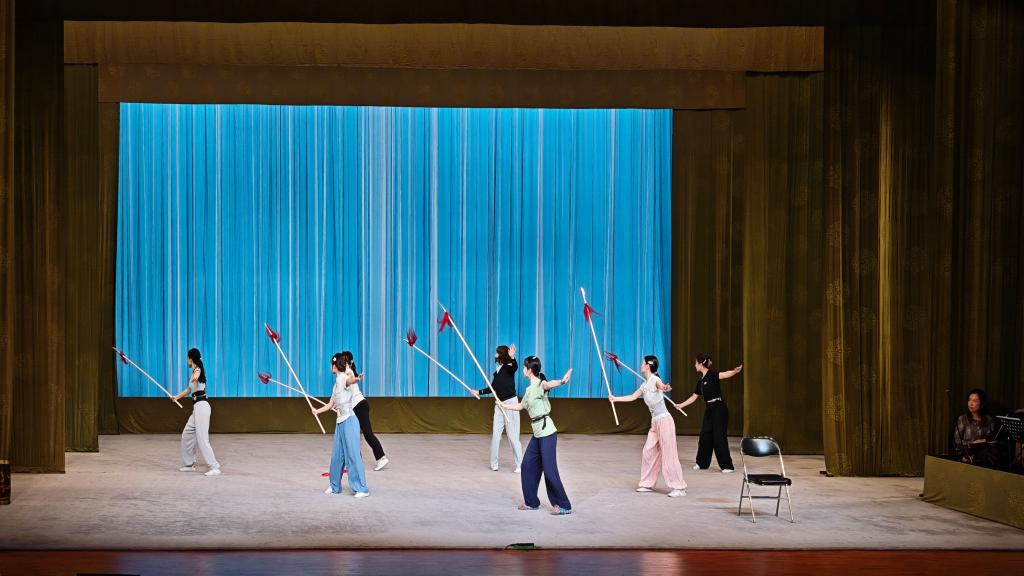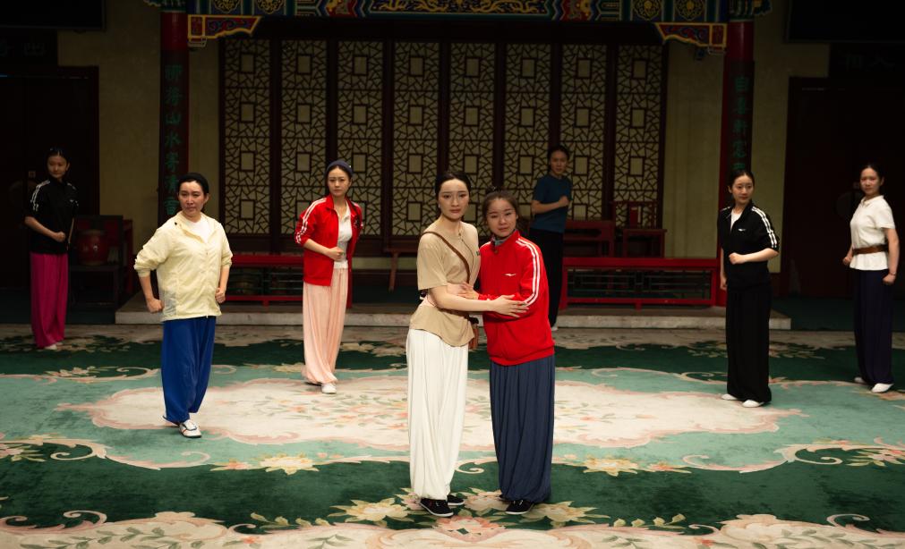 9月北京,北京人民劇場排練廳,鼓點驟起,急促如命運敲門。八個年輕姑娘挽著手臂向前邁步,汗水順著臉頰滑落,在練功服上洇開深色的印記。