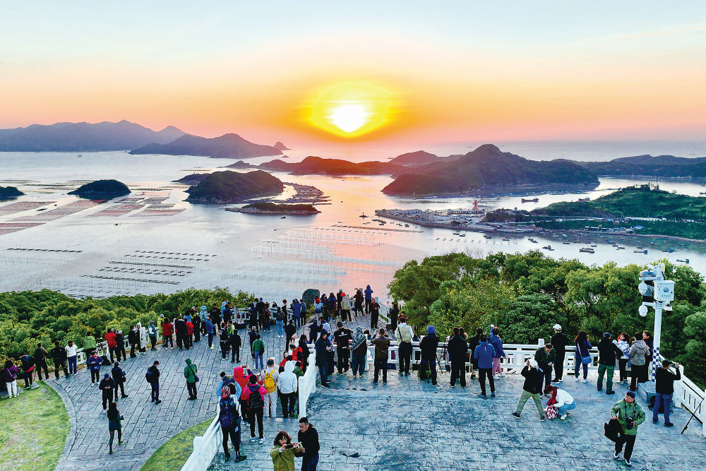 2024年11月29日,游客在霞浦縣三沙鎮花竹村觀賞日出。