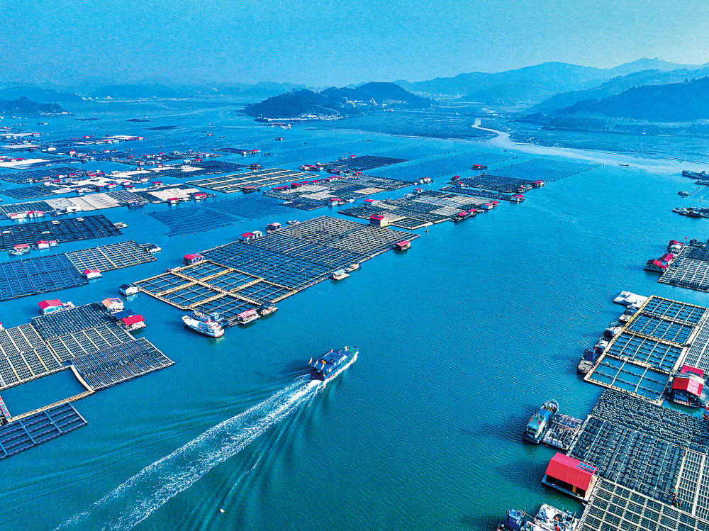 船只行駛在霞浦縣海上養殖區(2024年1月11日攝)。