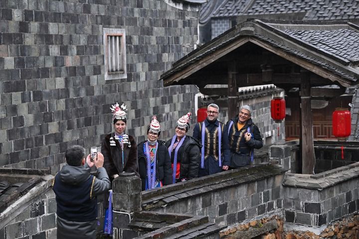 2025年1月20日,意大利客人在霞浦縣半月里村參觀拍照。