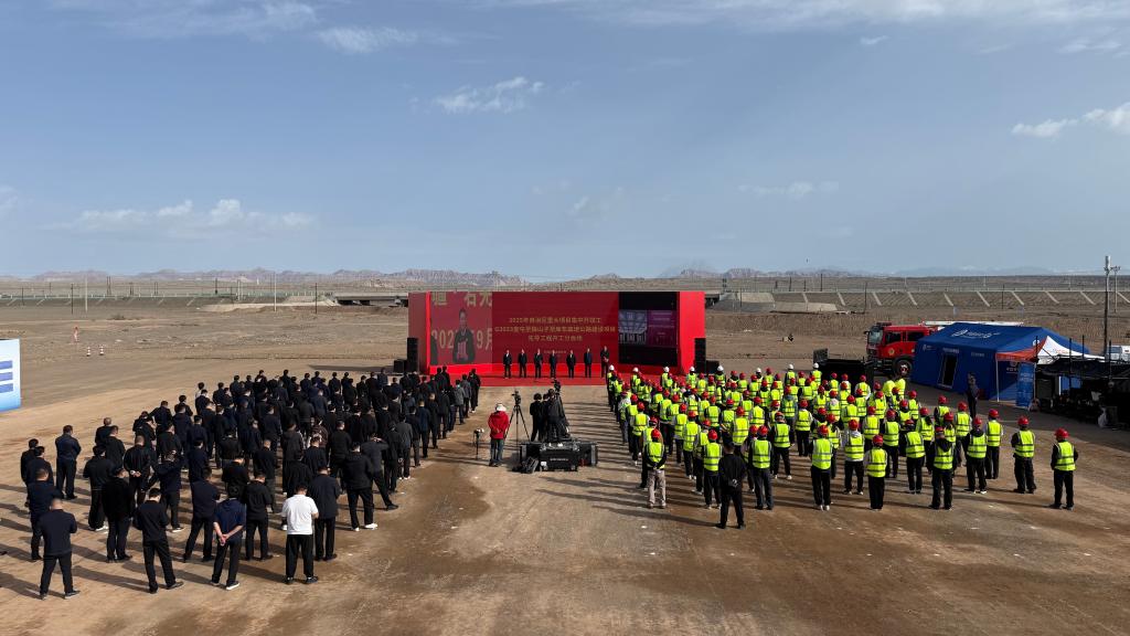 這是9月20日在新疆阿克蘇地區庫車市拍攝的獨庫高速開工分會場。(新疆維吾爾自治區交通運輸廳供圖)