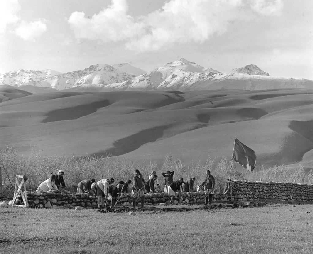 新疆新源縣的牧民在草原上勞動(1979年2月19日發)。