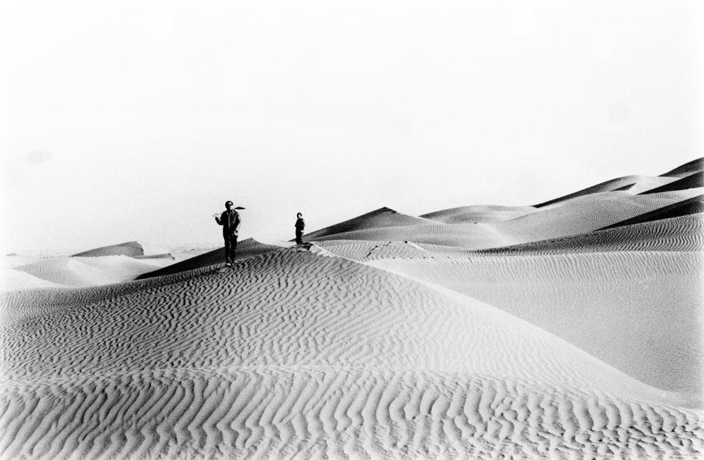 科考隊員正在沙漠腹地進行實地考察(1988年1月12日發)。