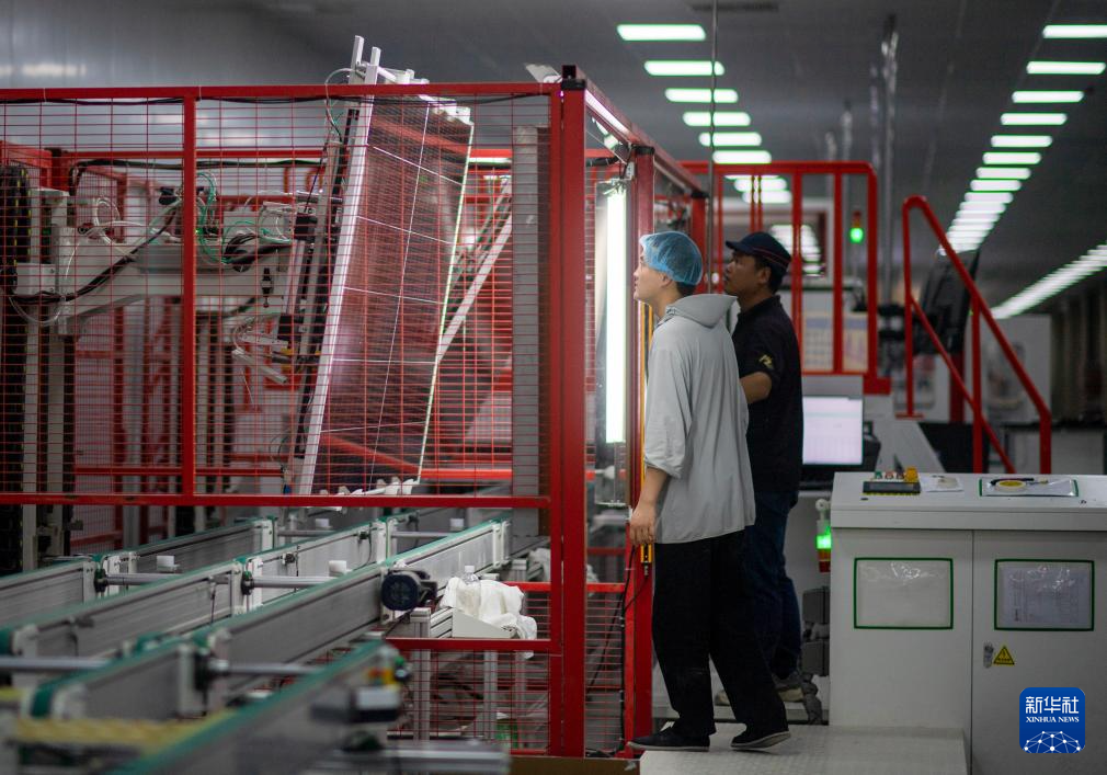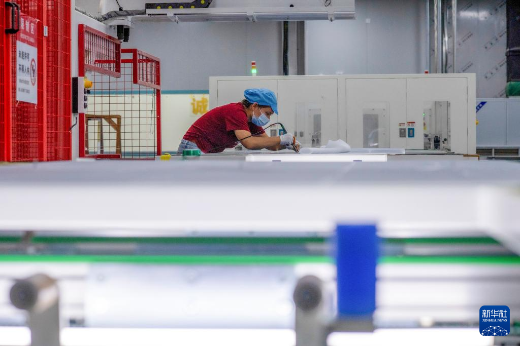 9月22日,工人在新疆巴音郭楞蒙古自治州若羌縣的國晟企誠新能源有限公司生產光伏電池片。