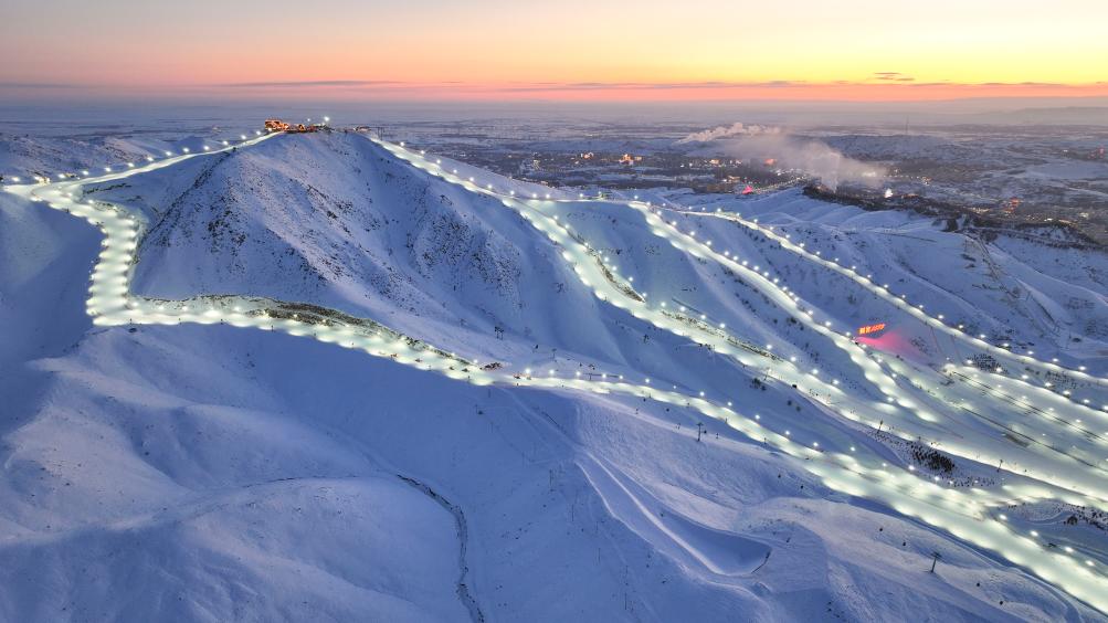 黃昏時分的將軍山國際滑雪度假區(2025年1月24日攝)。將軍山國際滑雪度假區在夜間開放多條雪道,以滿足“雪友”多樣化需求。