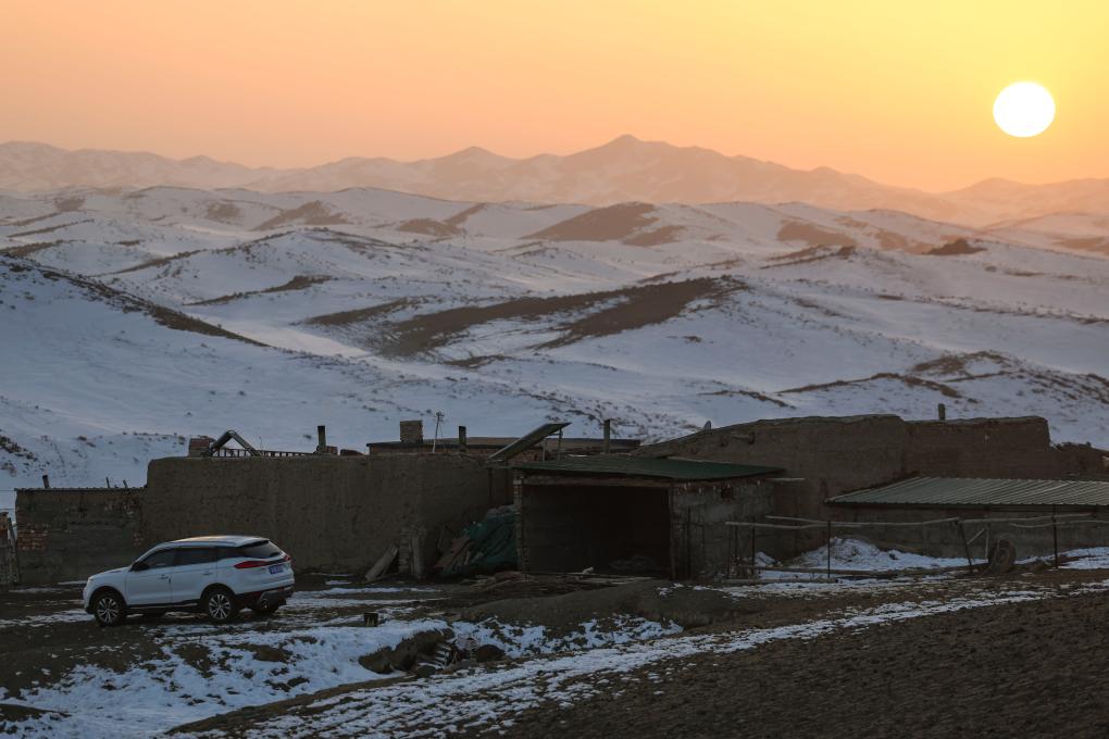 冬牧場上巴哈提家的房屋。屋旁的白色汽車是為慶祝小女兒昆樹阿克考上大學所買的禮物。(2023年12月1日攝)