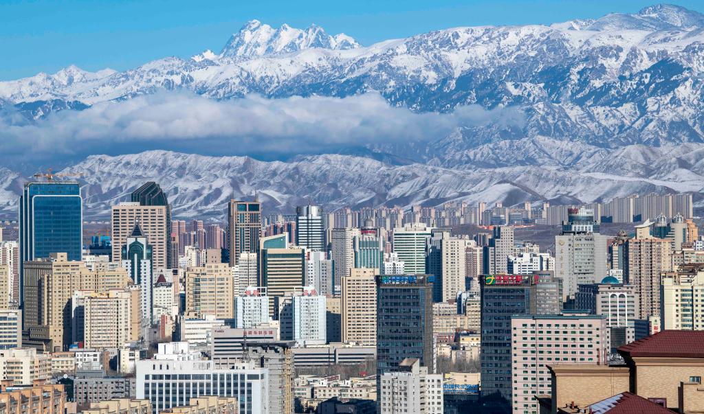 天山腳下的烏魯木齊市城區一角(2022年3月30日攝)。