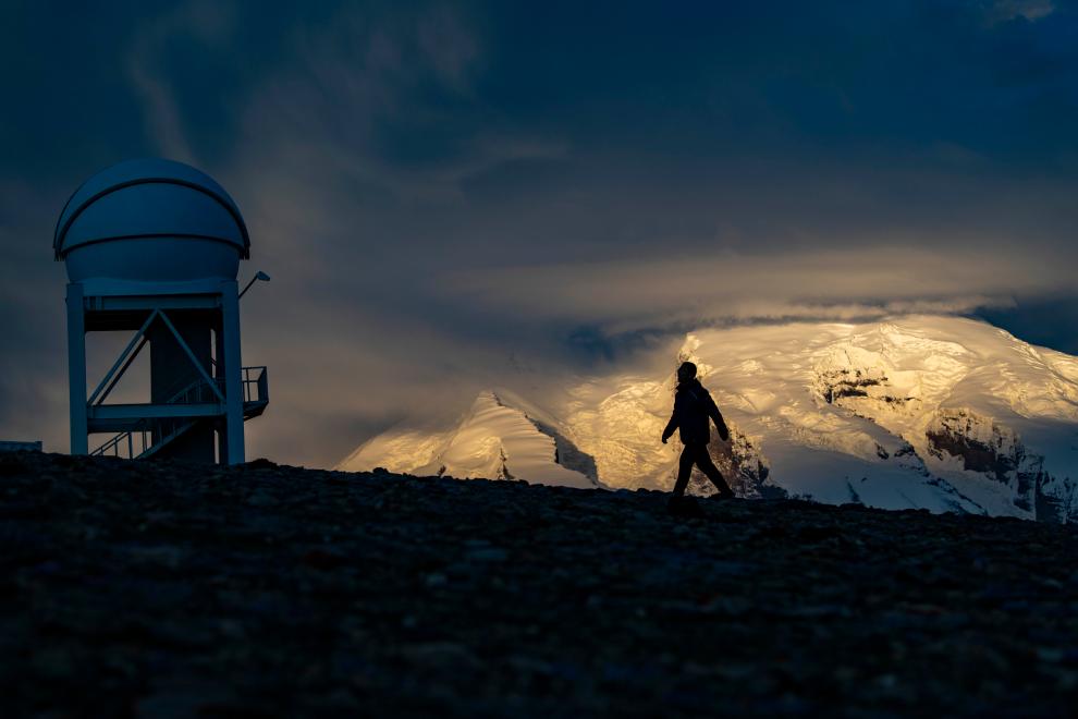 天文科技工作者馮國杰在中國科學院新疆天文臺慕士塔格觀測站內巡查(2020年6月15日攝)。