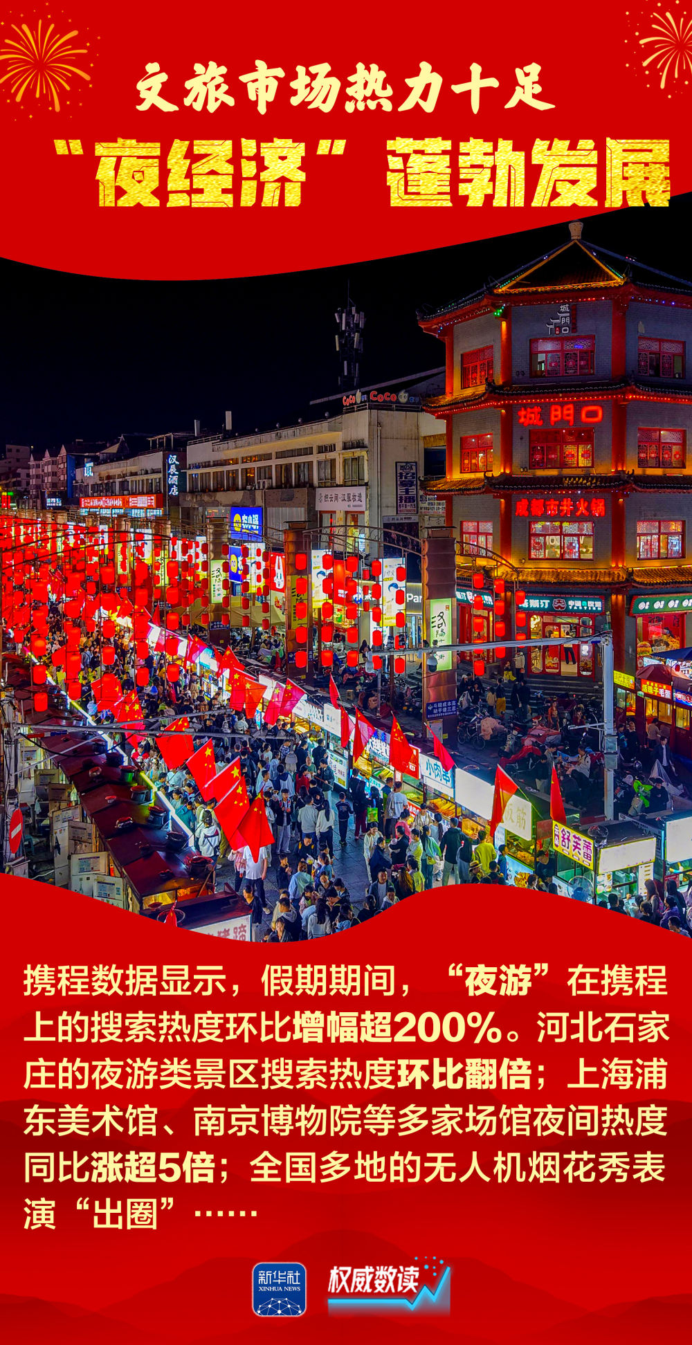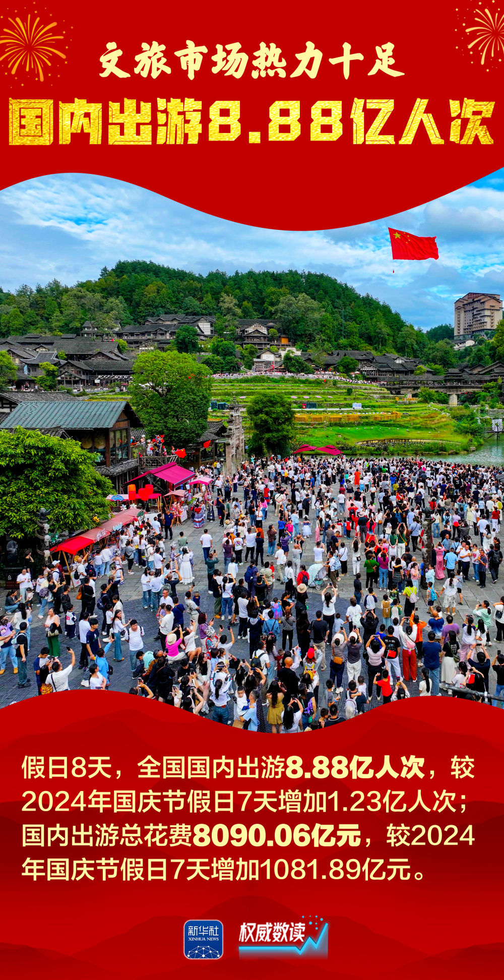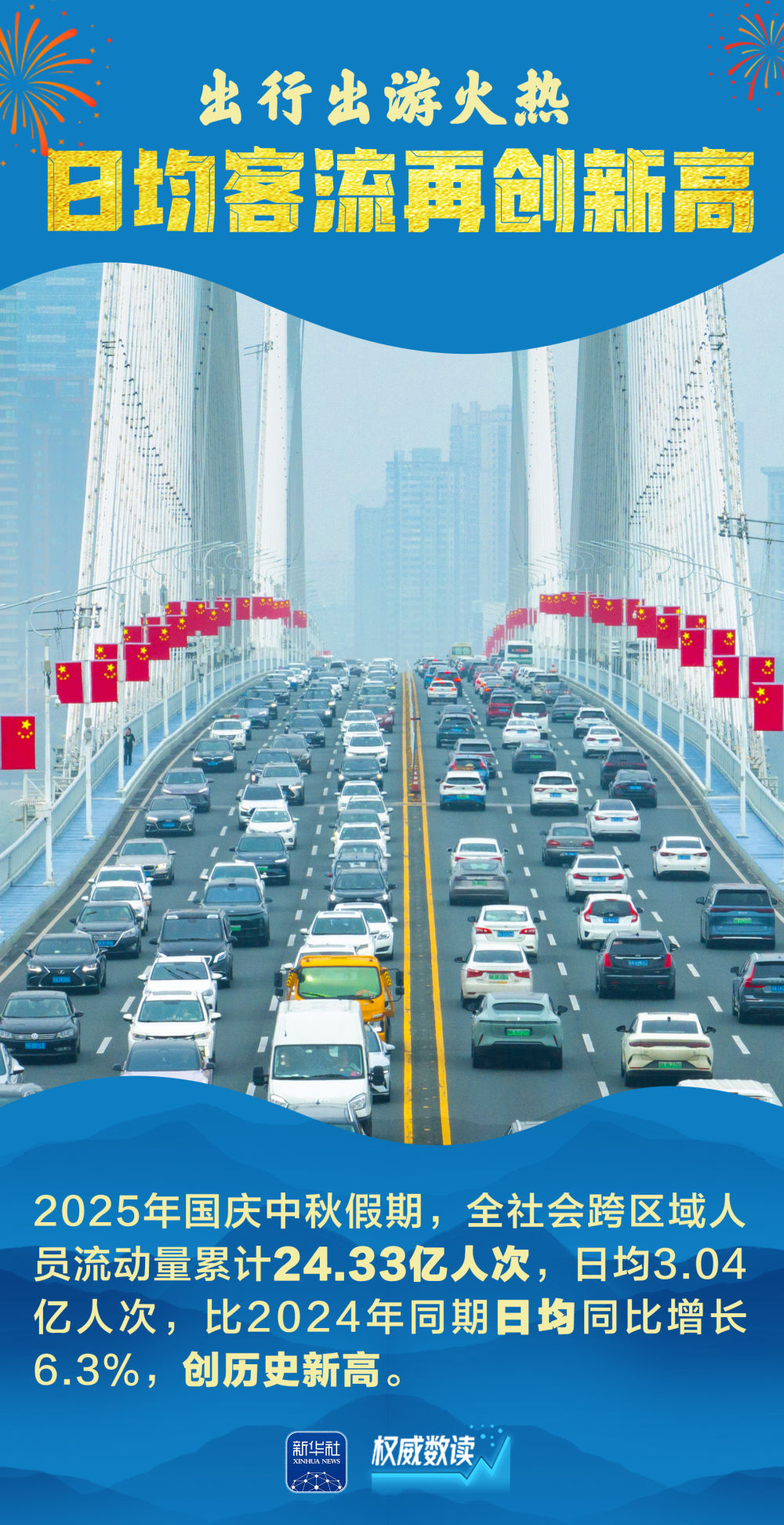 2025年國慶疊加中秋、家國同慶,交通出行、文化旅游、消費市場等都呈現火熱場景。每一組躍動的數據,展示經濟的奔騰活力;每一個熱鬧的場景,彰顯發展的蓬勃生機。讓我們跟隨海報,一起感受這個火熱奔騰、祥和喜慶的國慶中秋長假。
