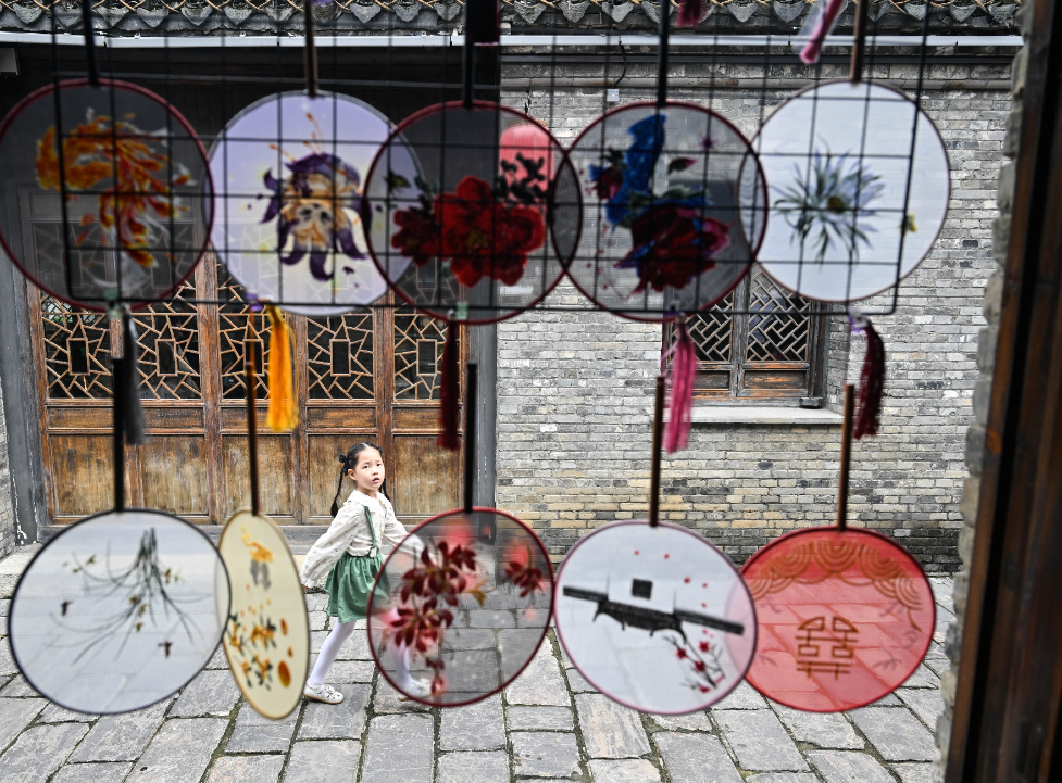 10月1日,小朋友走在盱眙縣第一山歷史文化街區。新華社記者 季春鵬 攝