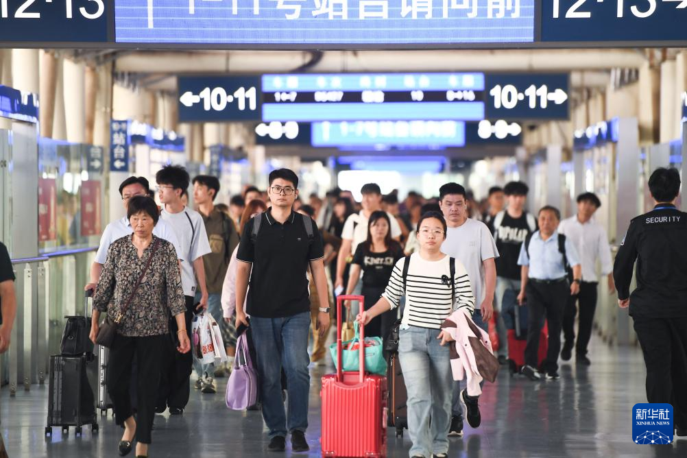 10月7日,旅客從南京火車站出行。新華社發(楊素平 攝)
