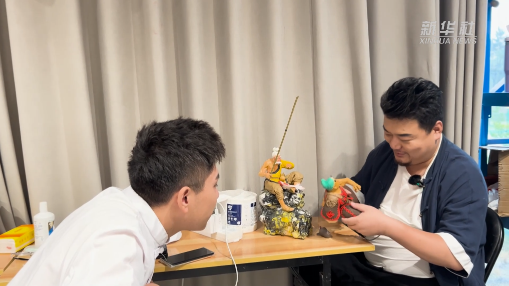 現象級游戲《黑神話·悟空》的爆火,為張倍源的探索注入了強勁靈感。傳統面塑的細膩技法與游戲角色猛烈碰撞,催生出極具張力的作品,更解鎖了非遺傳承的全新表達維度。
