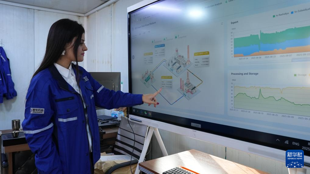 10月12日,首批振華石油獎學金項目留學生阿婭·伊馬德在伊拉克東巴油田數智油田部工作。新華社記者 段敏夫 攝
