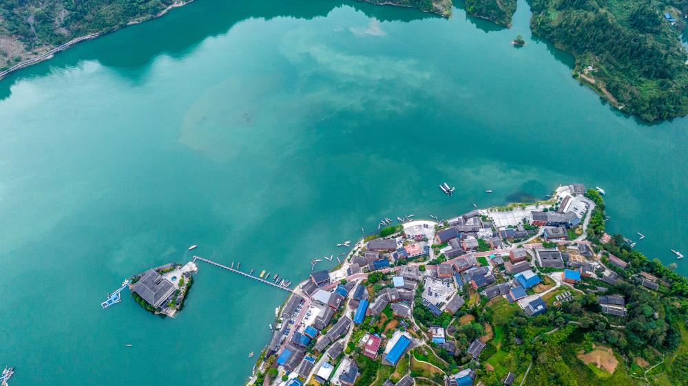 重慶市酉陽縣酉水河鎮河灣村遠景。新華社發(馬杰攝)