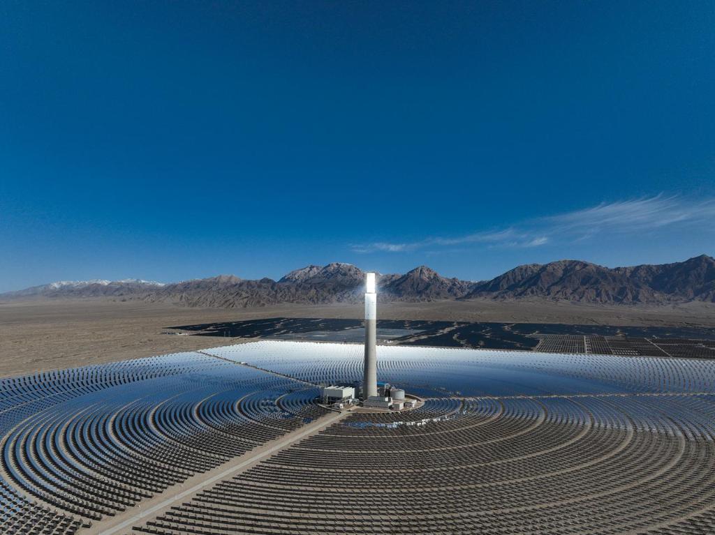 這是2024年4月23日在青海省海西蒙古族藏族自治州德令哈市光伏(光熱)產業園拍攝的光熱電站(無人機照片)。新華社記者張龍 攝
