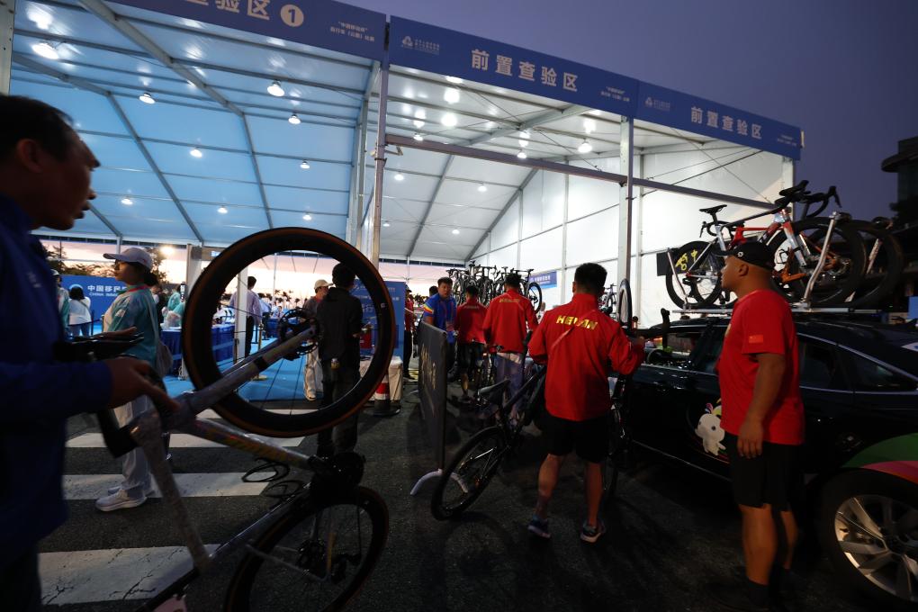 11月8日,參賽運動隊車輛經過前置通關查驗區。新華社記者 毛思倩 攝