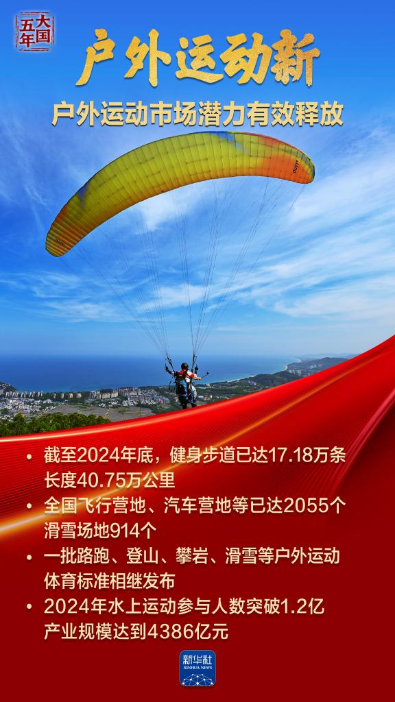 競技場上,國旗頻升國歌頻傳,體育健兒寫下“體育大國”“奧運強國”最精彩篇章;公園里巷,全民健身,“輕體育”生活成為“健康中國”新風尚;“村超”“蘇超”好戲連臺、熱火朝天,普通人成為新主角;新業態、新消費迸發無限活力,體育經濟億萬規模助力國民經濟……