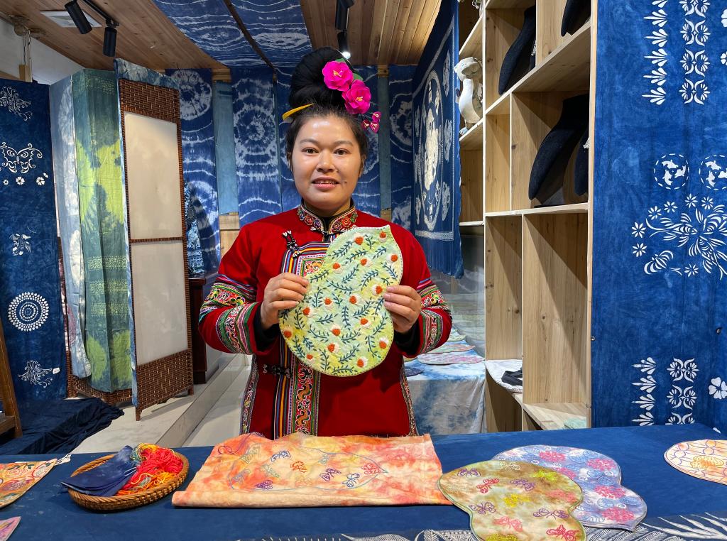 在陸勇妹看來,老手藝從來不該是博物館里靜置的標本,而應走進生活、煥發活力。合作社一方面通過“進校園”等活動,吸引更多年輕人了解傳統刺繡技藝,讓他們在穿針引線間讀懂民族文化;另一方面,開展染布、刺繡體驗活動,讓游客親手制作非遺作品,帶著這份獨特記憶離開。