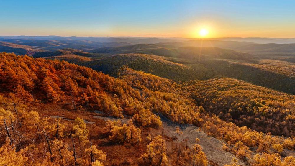 這是9月28日在內蒙古呼倫貝爾市牙克石市綽河源鎮拍攝的摩天嶺林海日出。新華每日電訊記者 馬金瑞 攝