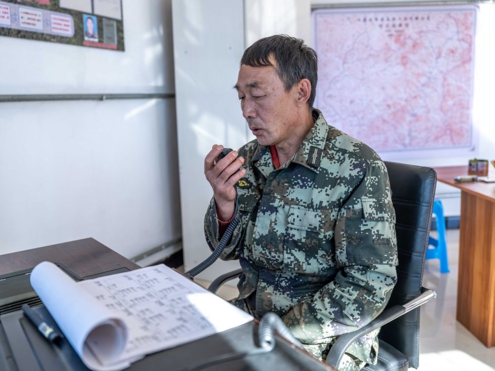9月28日,在內蒙古呼倫貝爾市牙克石市綽河源鎮摩天嶺瞭望站,孫忠全在匯報當日山中情況。新華每日電訊記者 馬金瑞 攝