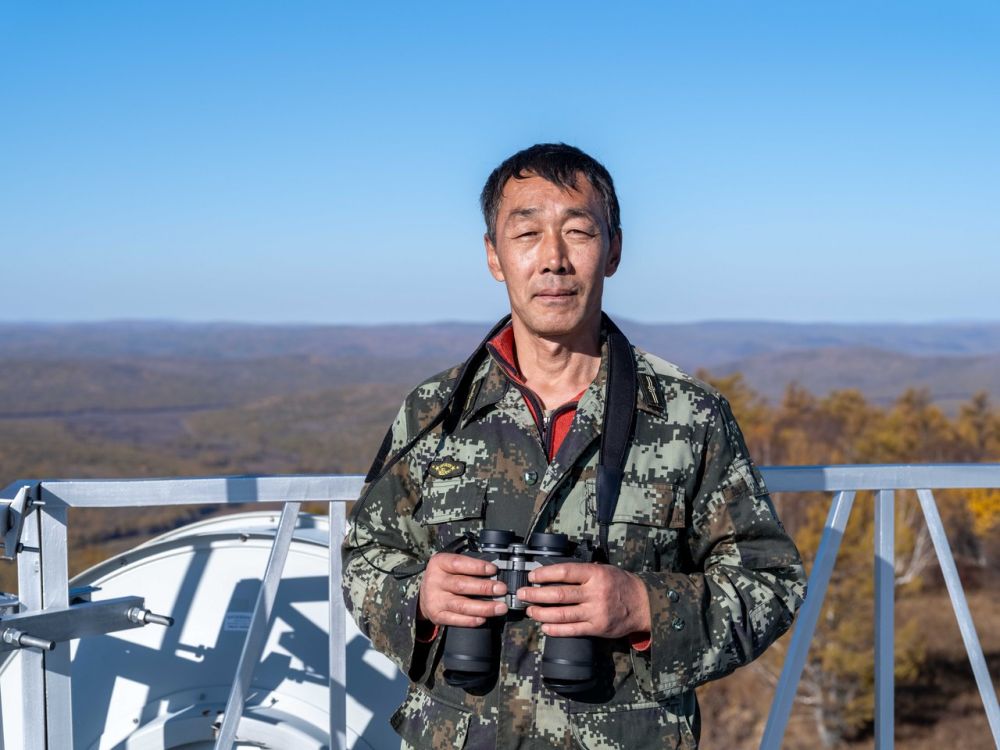 9月28日,在內蒙古呼倫貝爾市牙克石市綽河源鎮摩天嶺瞭望站拍攝的孫忠全。新華每日電訊記者 馬金瑞 攝