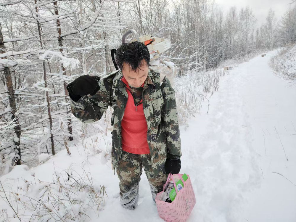 10月26日,孫忠全在摩天嶺瞭望站搬運物資。(受訪者供圖)