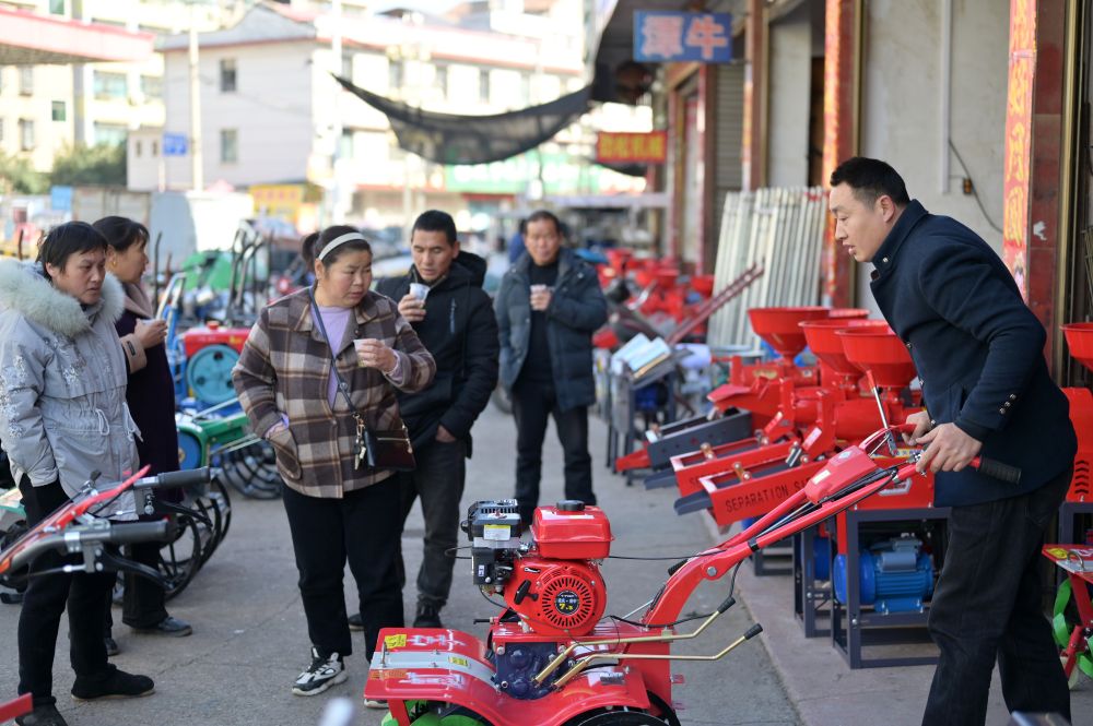 2025年2月9日,在湖南省婁底市雙峰縣農機市場,農戶在選購小農機。新華社發(李建新 攝)