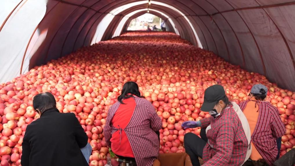 冬日已至,果園仍忙。在陜西省千陽縣,一片片矮砧蘋果園里,果農們搶抓農時、采摘晚熟蘋果的身影仍隨處可見。