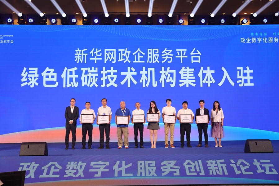 新華網政企服務平臺綠色低碳技術機構集體入駐儀式。中國石油大學(華東)、甘肅自然能源研究所、遠大能源利用管理有限公司、深圳市中電電力技術股份有限公司、艾瑞汽車科技(哈爾濱)股份有限公司、哈爾濱匯鑫儀器儀表有限責任公司、哈爾濱東安汽車動力股份有限公司、成都云卬科技有限公司等機構代表出席活動。
