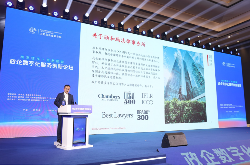 顧和瑪律師事務所(KKMP)中國業務負責人彭澤宇發表主旨演講。
