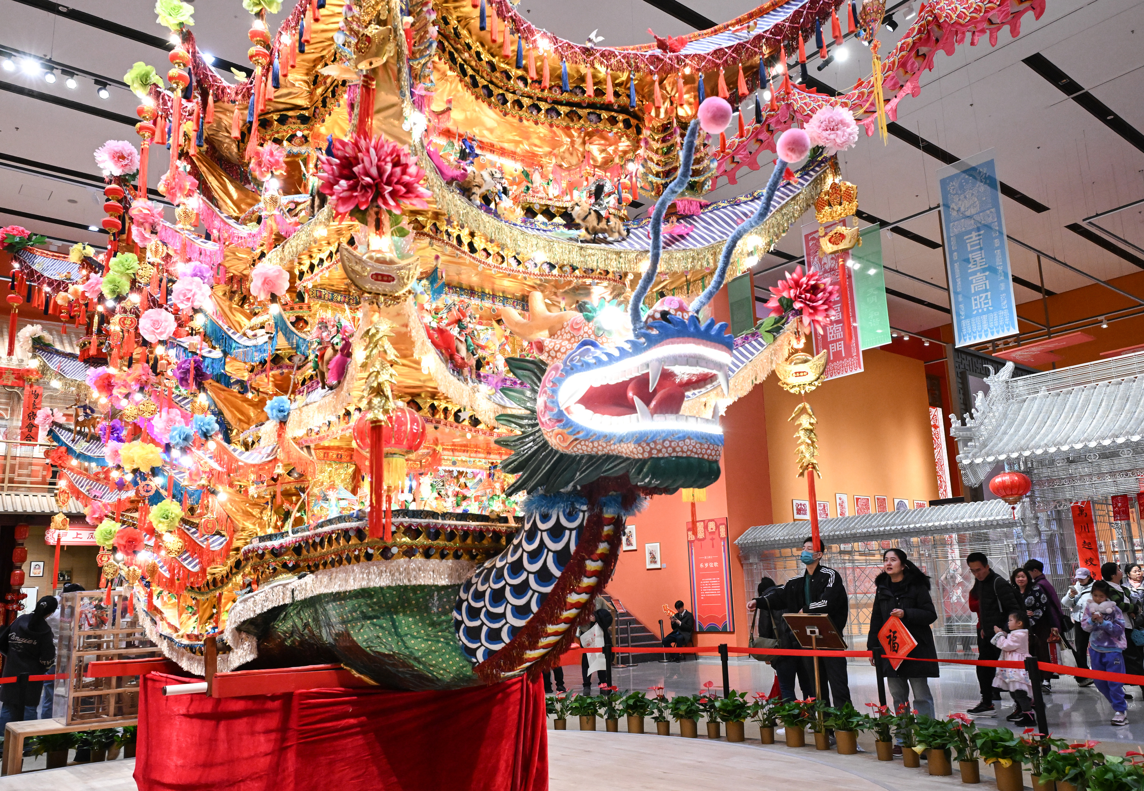 2024年12月21日,觀眾在中國工藝美術館的“過年——春節主題展”參觀非遺項目——“龍船燈”展品。新華社記者 李賀 攝